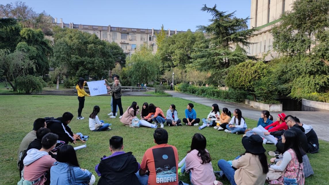 南校区图书馆旁绿地草坪举行了2020级本科生“快乐起航”心理健康与团体辅导活动。此次活动由日韩无码