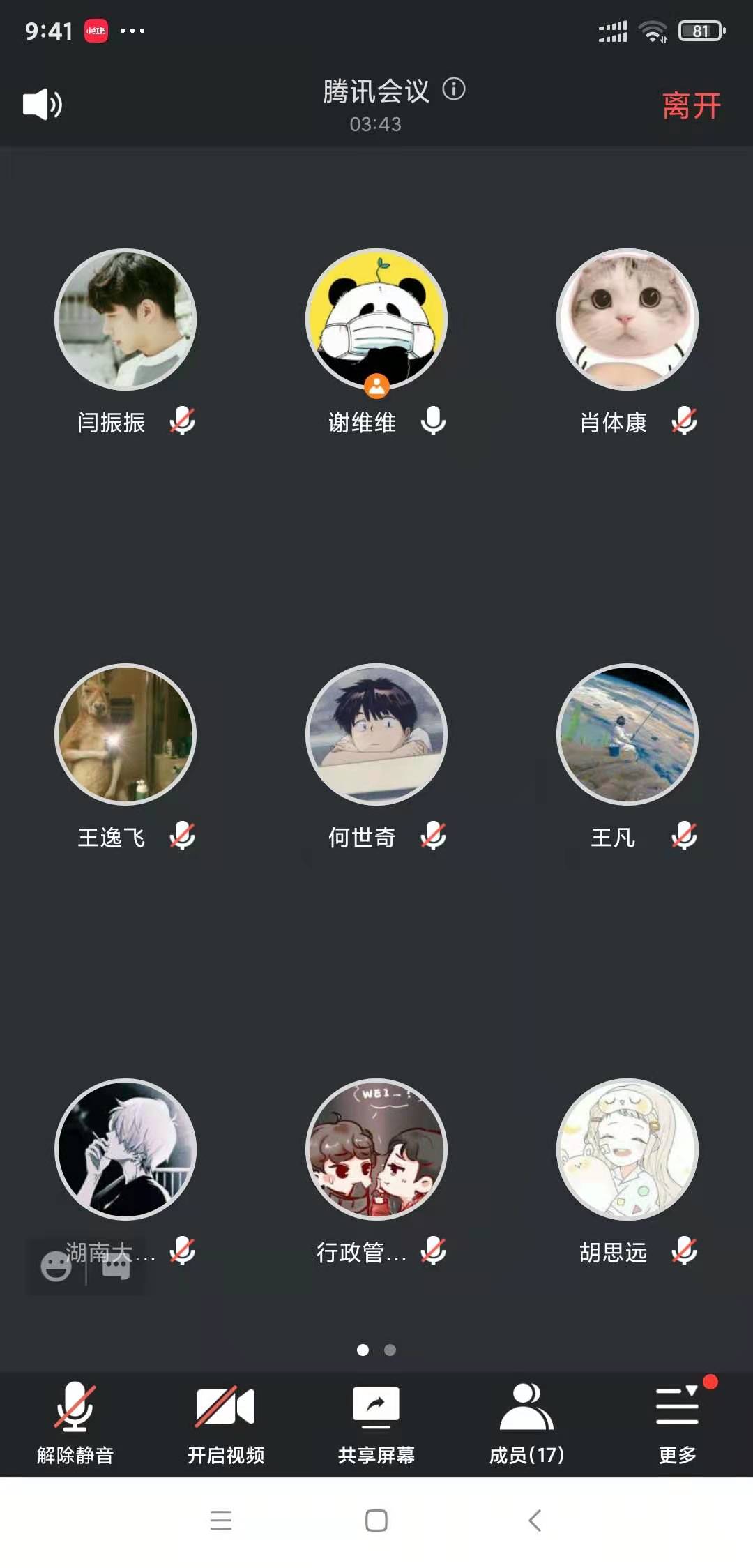 3月26日下午,日韩无码 本科生辅导员王浩老师、2019级辅导员闫振振老师为2017级本科生开展线上心理辅导课程,旨在了解2017级本科生“停课不停学”线上学习情况,调节同学们在家中的不良情绪。会议上,王浩老师强调,同学们在家中学习也不要懈怠。在家除了学习、上网课,也要多注意身体锻炼,强健自己的体魄后,才有更强的免疫力,在锻炼身体的同时也可以为抗击疫情做出一份贡献。随后,闫振振老师鼓励同学们要凝聚打赢疫情防控阻击战的正能量、提振抗击疫情的信心,做好升学、就业准备。