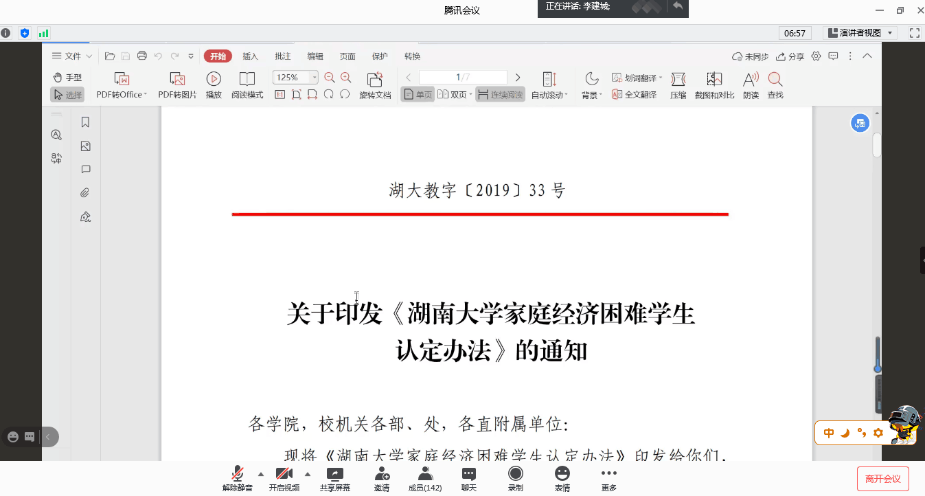 《关于做好2020-2021学年家庭经济困难学生认定工作的通知》,并对申请操作、流程做出详细介绍。最后,闫老师还强调希望同学们秉持诚信原则,根据家庭实际情况做出申请。
