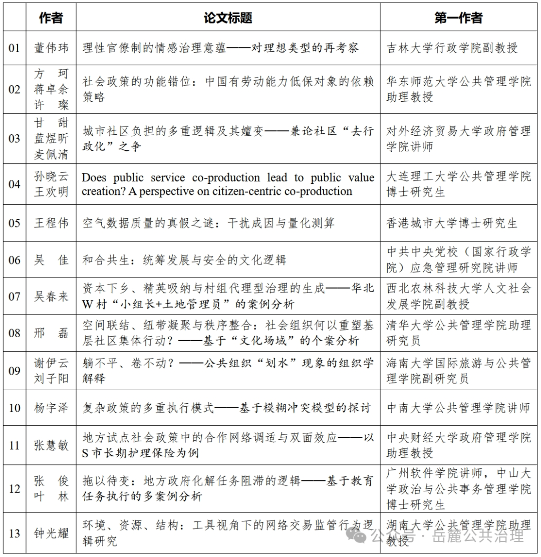 ✿如有未尽事宜,请及时与《岳麓公共治理》编辑部联系。