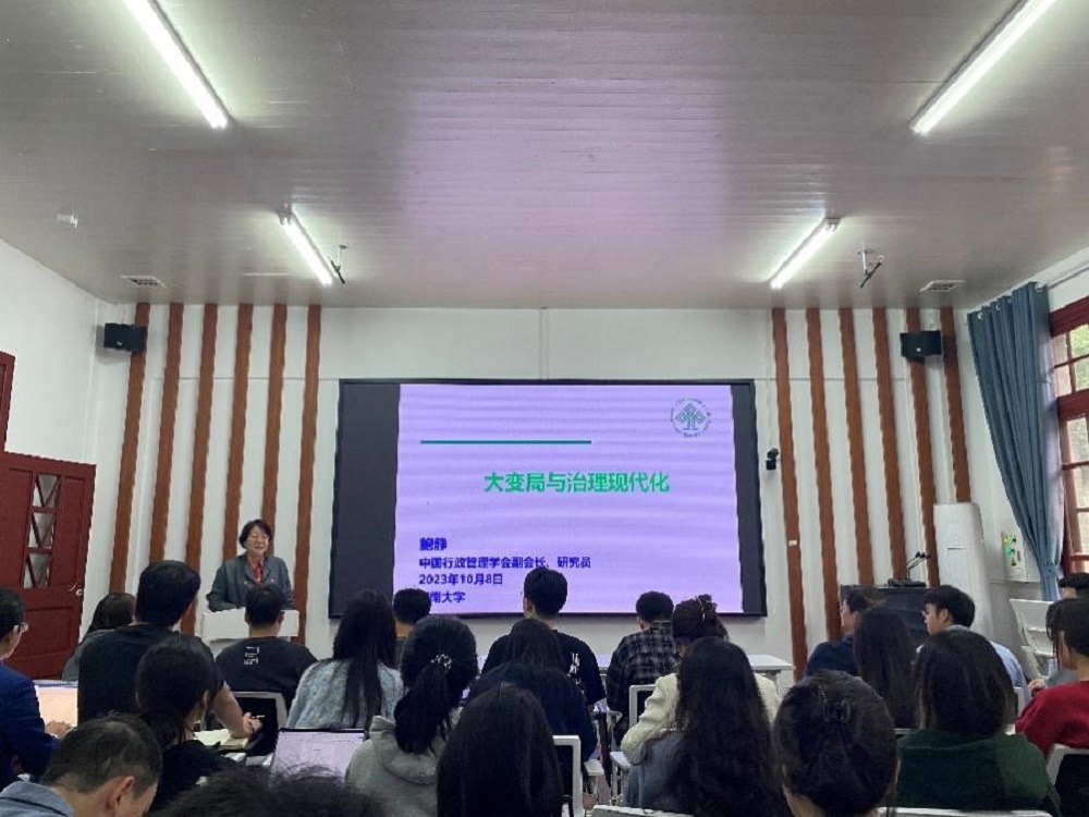 10月8日下午三点半,我院举办2023年第5期公共管理名家岳麓论坛,本次论坛也是庆祝湖南大学公共管理学科恢复二十周年系列活动之一。中国行政管理学会鲍静副会长受邀担任本次论坛的主讲人,为师生带来了题为“大变局与治理现代化”的精彩讲座。我院副院长谭海波教授担任讲座主持人,吸引学院80余名师生参加。