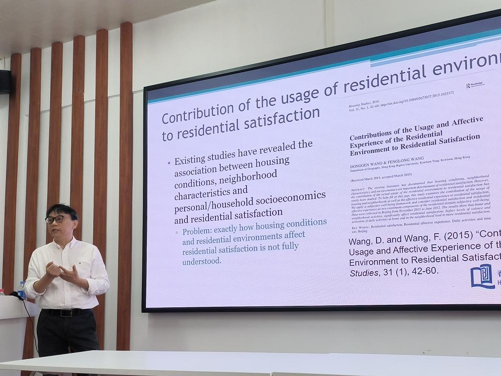 王冬根教授首先梳理了居住满意度的研究脉络,介绍了围绕居住满意度的概念与理论、量度、影响因素等议题的研究进展,指出居住满意度隐含了复杂的心理过程;随后,王冬根教授介绍了其团队在居住满意度和居住幸福感领域开展的一系列高质量研究,重点向大家阐述了居住条件以及迁居行为对居住满意度的影响,包括居住环境的实际使用频率和持续时间对居住满意度的影响、居民个人偏好对居住满意度的影响、家庭不同成员从迁居中感知的居住满意度差异等,让听众深刻地理解了居住条件与居住满意度之间的关系;随后,王冬根教授通过完整展示自己的一项研究,讲解了住房负担能力对心理健康的潜在作用,认为住房负担能力与居民心理健康息息相关,同时又存在着明显的群体差异和地区差异。