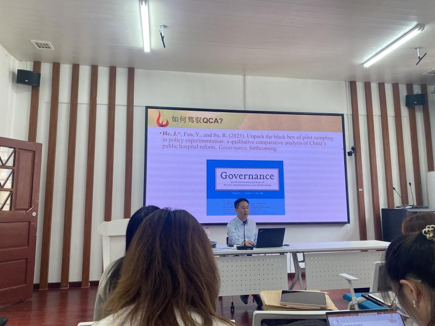 5月26日上午十点,我院举办2023年第1期公共管理青年学者岳麓论坛,本次论坛也是庆祝湖南大学公共管理学科恢复二十周年系列活动之一。香港科技大学公共政策学部长和经纬副教授受邀担任本次论坛的主讲人,为师生带来了题为“用QCA方法打开政策试点选择的黑盒子”的精彩讲座。我院副院长谭海波教授担任讲座主持人,吸引学院近五十名师生参加。