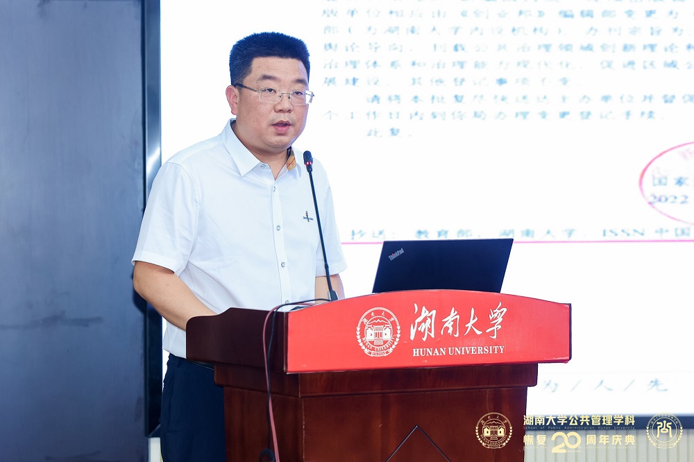 谭海波教授指出,《岳麓公共治理》要把握住湖南大学公共管理学科恢复二十周年的发展契机,努力在激励机制、流程标准化、平台交流等方面加快期刊建设。