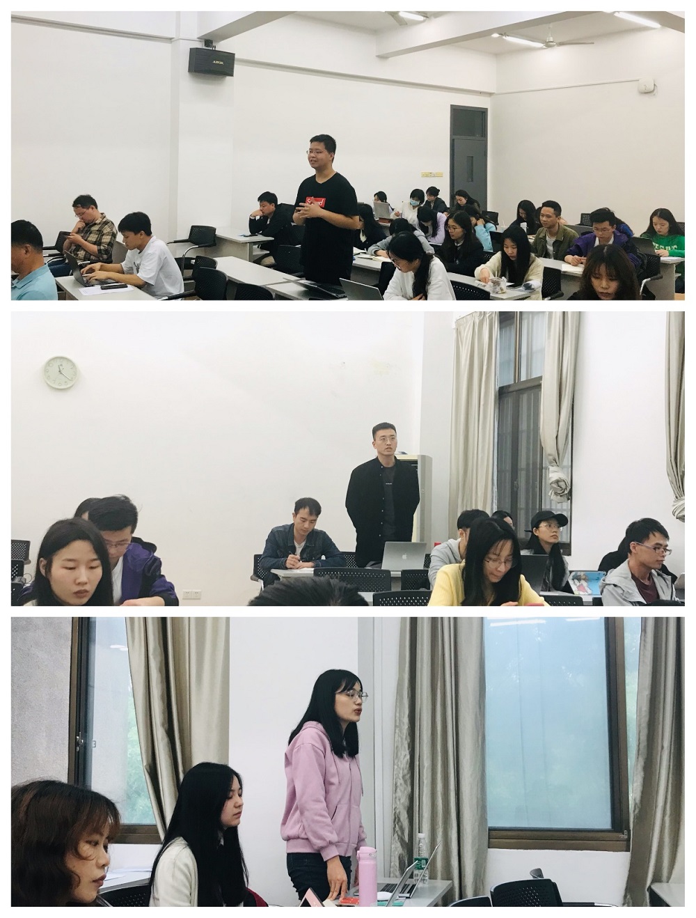 余敏江老师的精彩分享,让在座的同学们感受到了中国共产党在社会治理现代化百年历程探索中的努力,同时也引发了同学们的思考。在互动环节中,石一琨、叶玮、李丽东三位同学分别就中国社会治理现代化模式的推广、社会治理现代化中如何利用好互联网技术、智慧社区该如何建设等问题与余敏江老师进行了交流讨论。