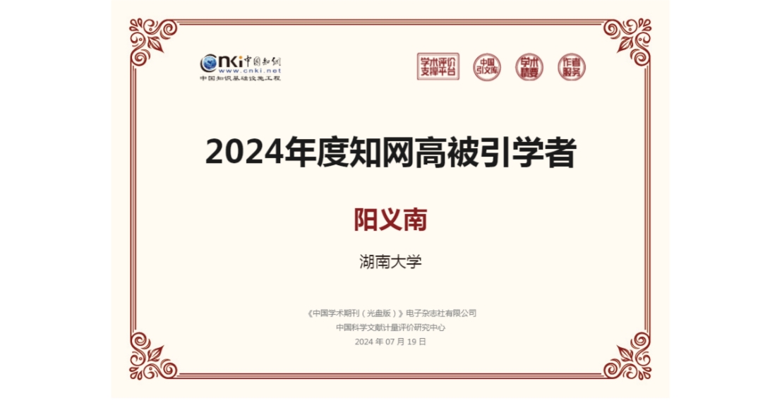 我院阳义南教授成功入选“2024年度知网高被引学者”。阳义南教授主要从事养老保险与金融、延迟退休、银发经济等老年经济学与政策研究。近十年内,他的30篇论文被《学术精要数据库》收录,其中28篇论文的PCSI指数大于1.65,12篇论文为高影响力论文,总PCSI指数达到210.19,位列保险与社会保障学科前1%。