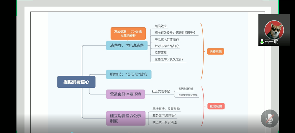 会议过程中,同志们就两会以来 “市场准入负面清单制度”、“地摊经济”、“保障就业”等热点问题纷纷基于自身专业知识、实际生活经历等发表自己的体会与看法。杨翱飞等同志提出,今年政府工作报告中没有设立具体的经济发展目标,而是更多地将工作重心放在稳就业、保民生、促增长的民生方面,反映了党和国家朴实沉稳,一心为民的治国理念。石一琨同志特别强调,推动“地摊经济”绝不是开历史的倒车,而是适应国家治理体系和治理能力现代化的重要转变。费梓萱等同志基于自身学科知识,就全面推进市场准入负面清单制度的政策理念和实践进行了全面地讨论。针对任诗程等同志对保障就业政策的讨论分享,王浩鼓励同学们坚定信心,提升自我,寻找机会,同时主动将个人追求融入到国家发展大潮流中,激流勇进,为国家发展贡献自己的一份力。
