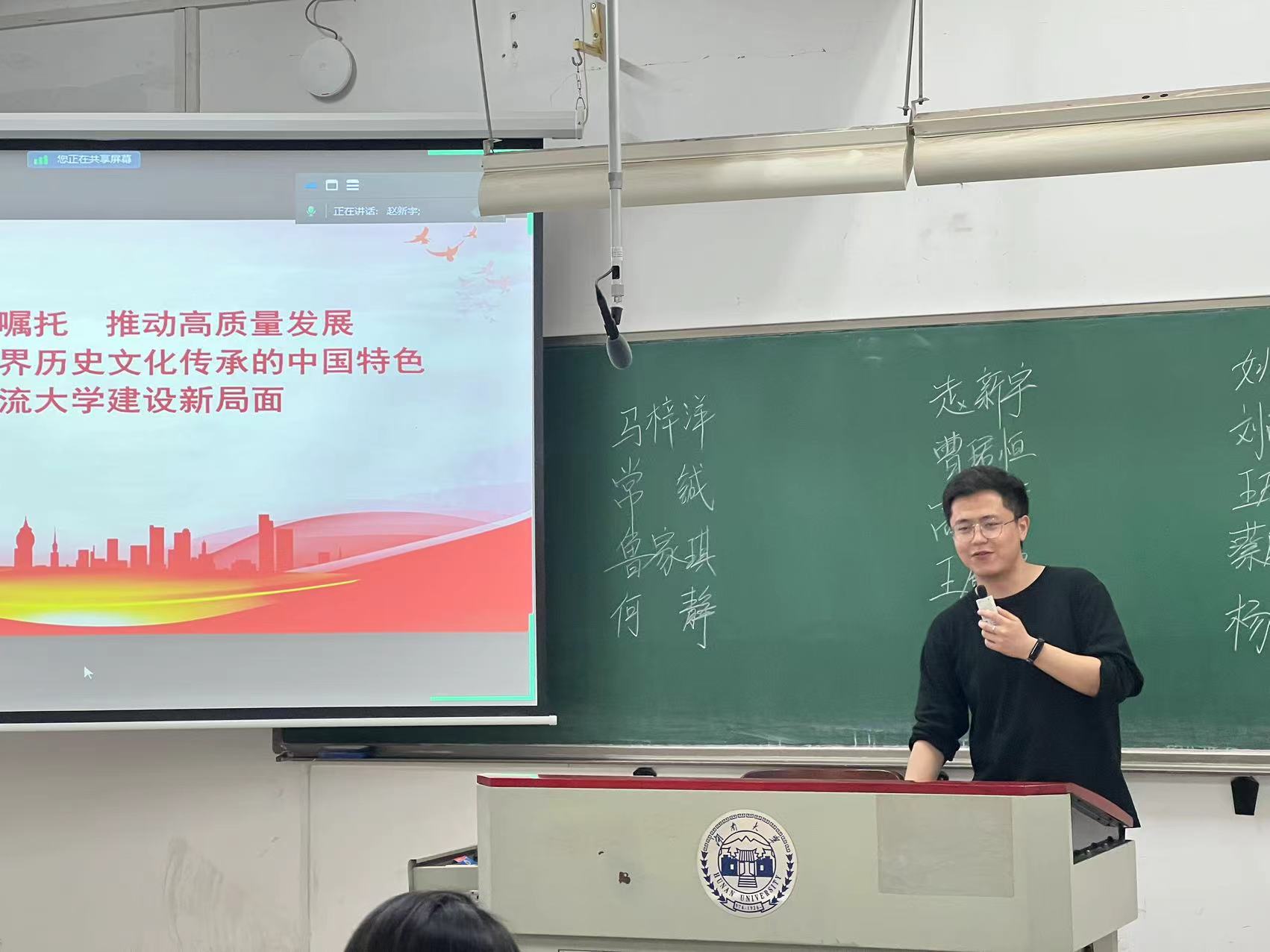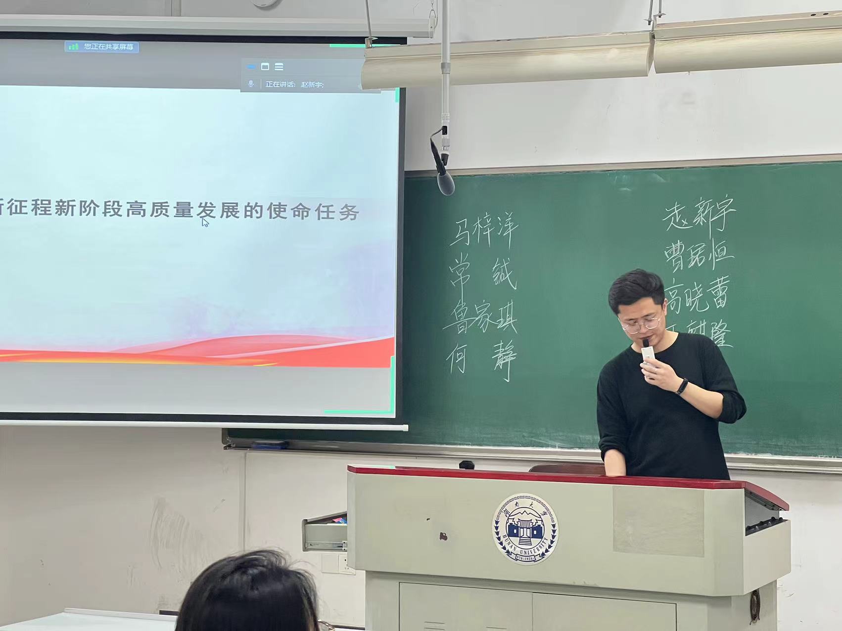 3月27日,我院本科生第一党支部于综合楼516教室开展了关于学习贯彻学校第十次党代会精神的主题党日活动,本次活动主题为“牢记总书记嘱托,推动高质量发展,奋力开拓富有世界历史文化传承的中国特色世界一流大学建设新局面”。本科生第一党支部书记赵新宇主持会议,支部全体成员参加学习。