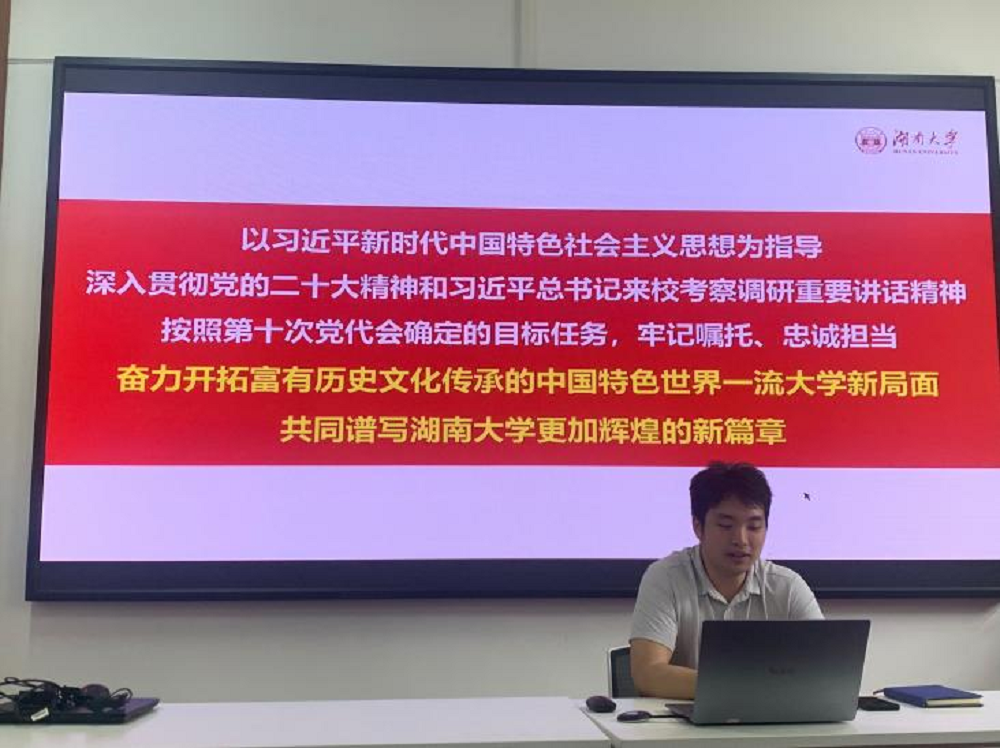 4月18日中午,湖南大学公共管理学院分党校第76期入党积极分子第六次培训课于院楼221教室举行。本次学习由辅导员胡春晖老师和曹珺恒同学主讲。