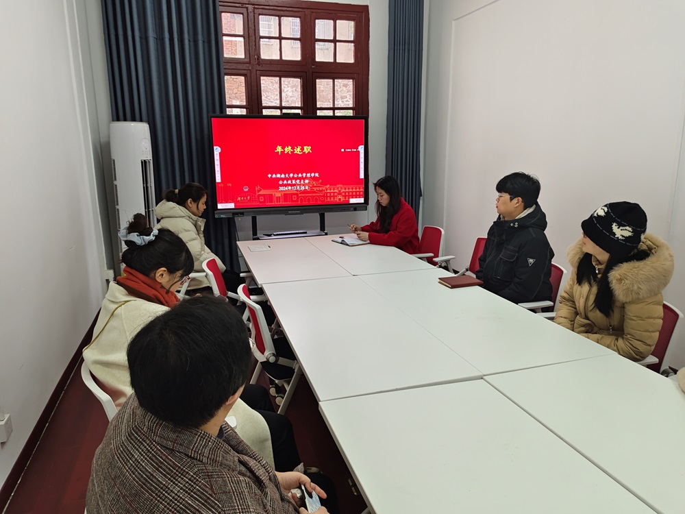 12月25日上午,我院公共政策党支部在公共管理学院214会议室开展了年终述职活动,会议由支部书记程聪慧主持。