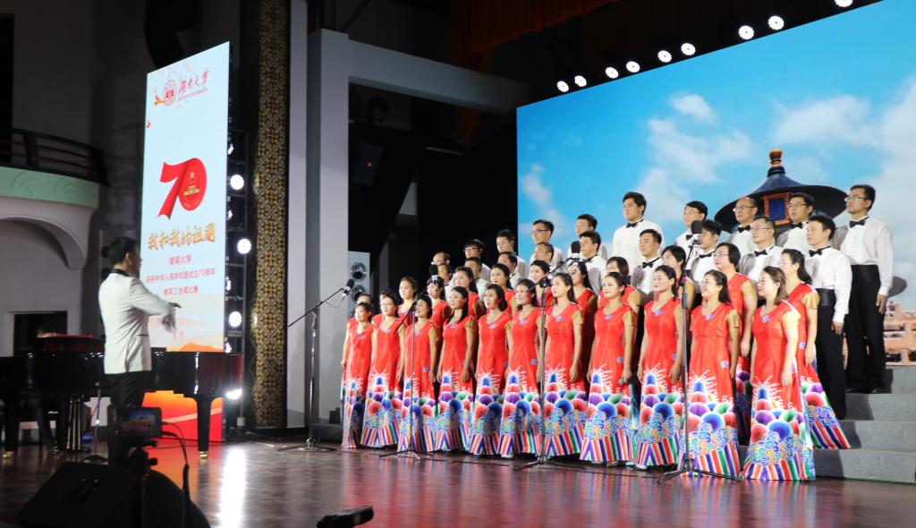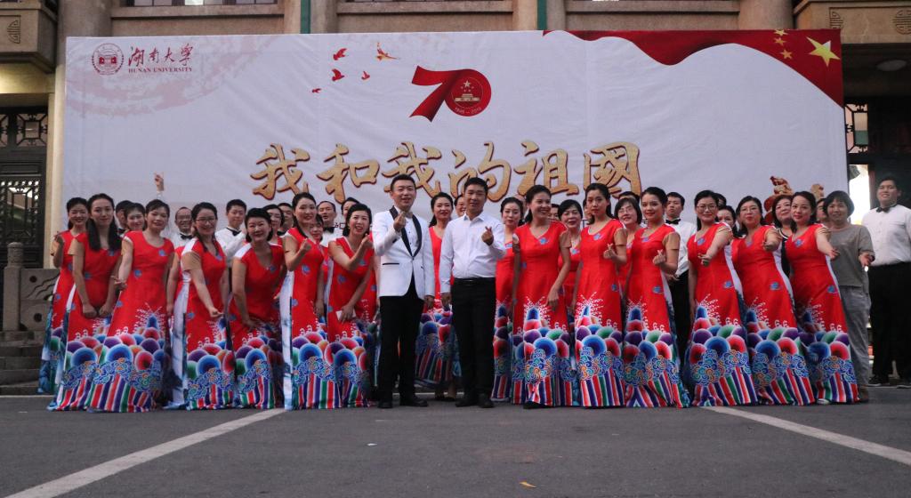 9月27日晚,湖南大学庆祝中华人民共和国成立70周年“我和我的祖国”教职工合唱比赛在大礼堂举行,各部门教职工用最嘹亮的歌声和最浓厚的爱国情怀,追忆中华民族从站起来到富起来、强起来的历史性飞跃,共同献礼新中国的七十华诞。