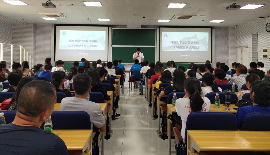 8月25日上午10点,我院2019级新生家长会在研究生院楼召开。公共管理学院院长李连友、党委书记付蓉芬、副院长谭海波、副书记杜倩博以及公共管理学院教师胡赛全、程聪慧出席会议,公管院2019级本科生新生及家长参加会议,会议由新生辅导员王浩老师主持。