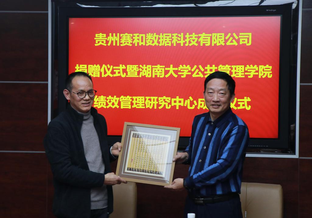 绩效管理研究中心成立仪式在405会议室举行,贵州赛和数据科技有限公司总经理欧阳征林、副总经理陈天、营销总监舒尤卫代表公司参加捐赠仪式,日韩无码