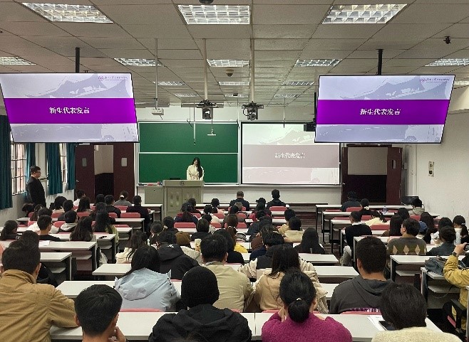 新生代表李若冰同学在发言中展现出对未来与导师共同学习的憧憬,并代表全体新生表达了对学院本科生导师制的感激。
