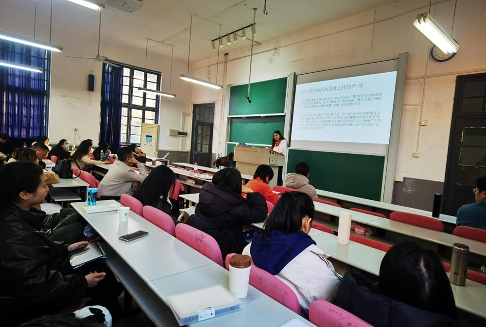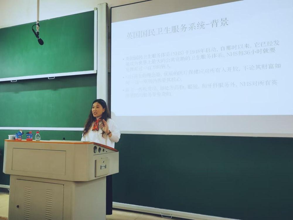 张亚楠老师首先对英国国民卫生服务系统(NHS)作了背景介绍,讲述其发展脉络、框架体系及改革进程,对NHS现在的结构进行详细解剖,让同学们对NHS有了更全面深入的认识。结合自己的就医经历,张老师讲述了英国普通人群在NHS体系下的分类就医过程和医药减免详情。随后,张老师分析了NHS和英格兰社会护理系统的运作机制,简述主要项目计划和资金来源与开支、信托赤字等情况。最后,针对英国医疗和护理系统目前面临的挑战,张老师提出了提高公共资金投入、优化资源配置、增加医护人员等发展建议。