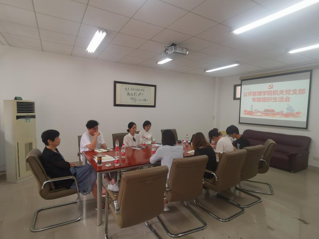 2020年7月1日,公共管理学院机关党支部组织支部成员集中观看七一特别节目《党旗飘扬 筑牢红色防火墙》直播微党课,并召开专题组织生活会。