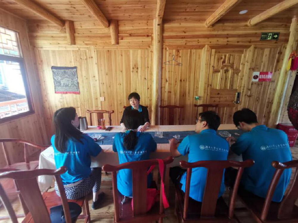 随后,大家与杨村长开展了座谈交流,了解白水洞村的基本情况,脱贫攻坚的效果和下一步脱贫计划。杨村长对湖南大学在助力白水洞村脱贫道路上做出的贡献表示肯定和感谢,并对白水洞村的发展充满信心。