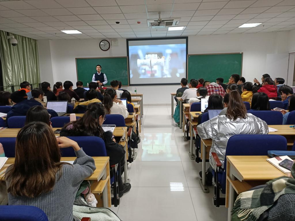 讲座伊始,杨机长播放了一段震撼的飞机飞行视频。随后,他结合自己成为机长的经历展开讲座。杨机长从飞机类别、飞机构造、飞行环境、工作环境四个方面分别进行了详细介绍并为同学们一一说明了导航系统、液压系统、指示灯系统、增压系统,各仪表和记录器等的功能。此外,杨机长还对飞机在大气压力不平常、恶劣天气等环境中飞行的注意事项以及相关技术措施进行了介绍,并对航空限流导致航班延误、824空难、鸟击事件等进行相关解读。