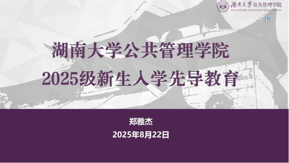 为助力2025级新生快速融入大学生活、明晰专业方向,8月22日,湖南大学公共管理学院举办新生入学先导教育活动,为新生搭建起了解专业、融入学院的桥梁。