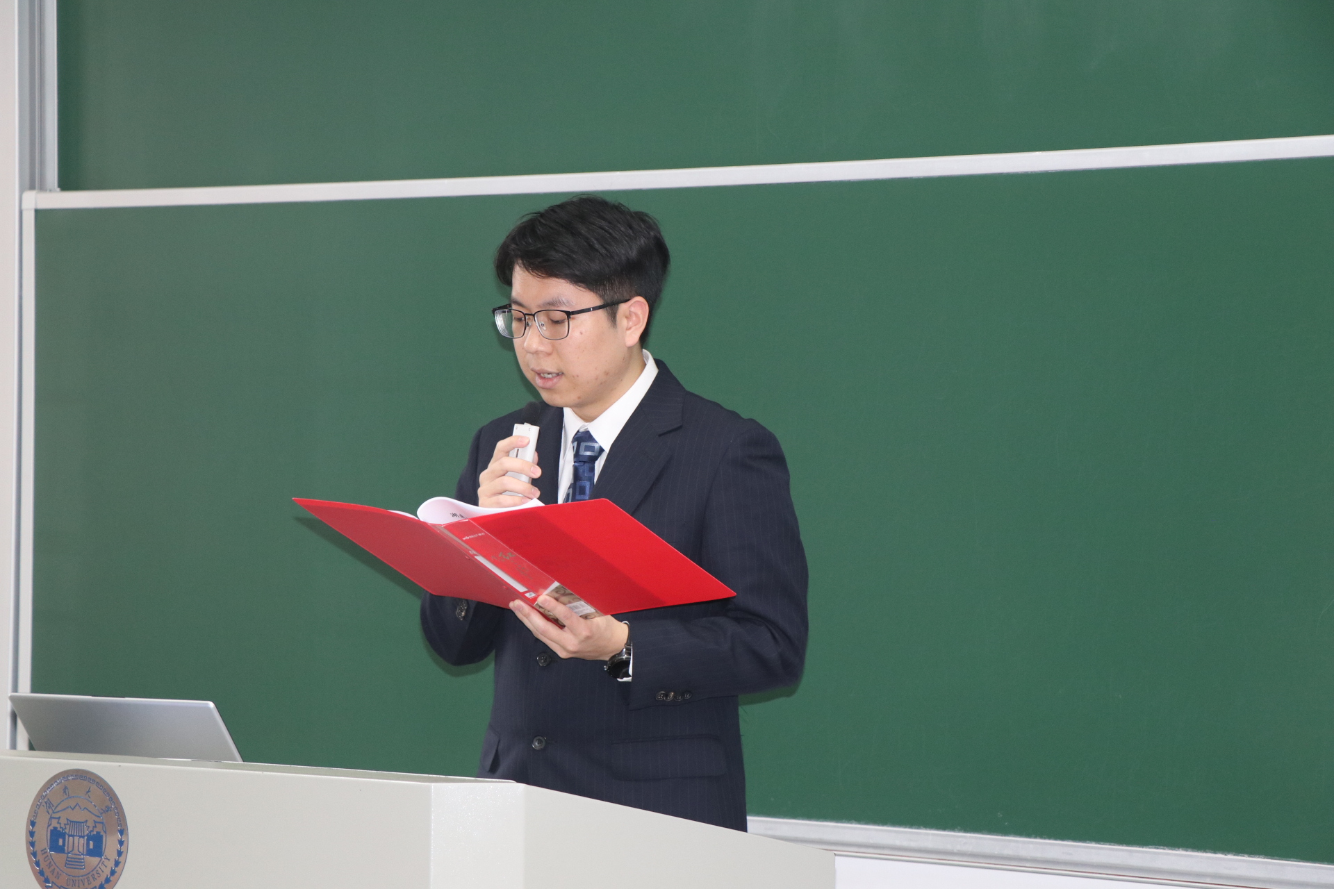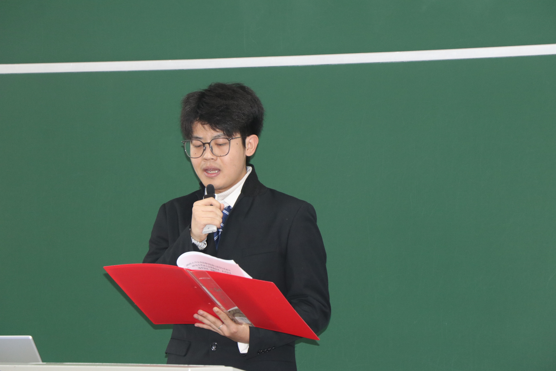 程骁宣读《学院第七届学生会主席团、研究生会主席团选举办法(草案)》