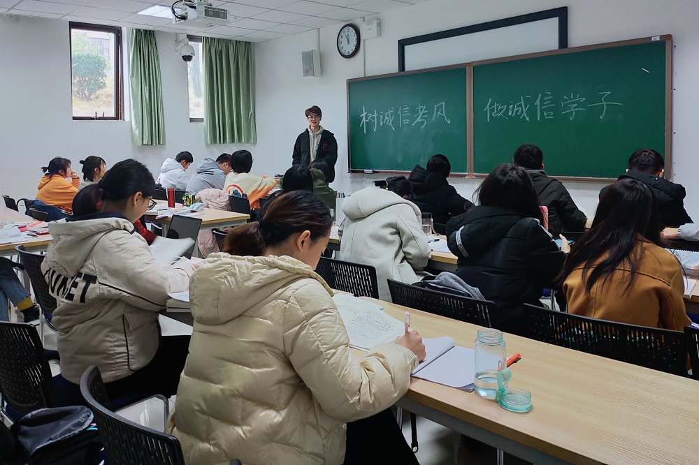 为严肃考风考纪,树道德之新风,立诚信之根基,1月4日,我院在研究生楼A103教室召开“树诚信考风,做诚信学子”主题考前诚信教育会。此次教育会由2019级本科生辅导员闫振振老师主讲,2019级全体本科生参与。