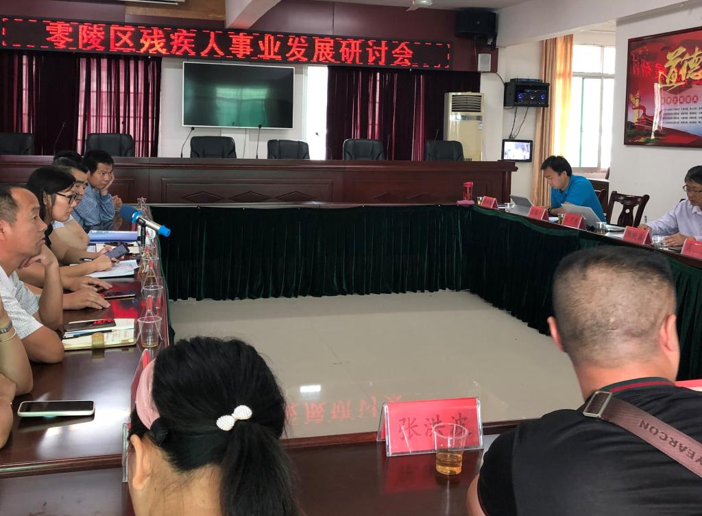 6月25日上午,在零陵区残联召开了“永州市零陵区残疾人事业发展研讨会”。会议由零陵区残联理事长高进展主持,陈晓春教授调研组成员、永州市及零陵区残联领导和相关工作人员、零陵区村(社区)领导代表、零陵区残疾人代表等参加了会议。我院陈晓春教授做了主题发言,围绕习近平总书记对残疾人发展事业的系列论述与讲话、我国残疾人相关法律法规以及湖南省残疾人动态数据研究课题的开展情况进行了汇报。随后,会议围绕“残疾人致残原因”、“动态数据采集情况及其困境”、“动态数据运用及分析报告转换成果”以及“残疾人就业、康复、教育、无障碍改造等具体需求”等主题展开了讨论,与会人员纷纷就各种主题进行交流探讨,大家畅所欲言,会议现场气氛非常浓厚,持续了3个多小时。