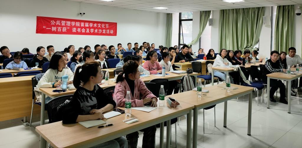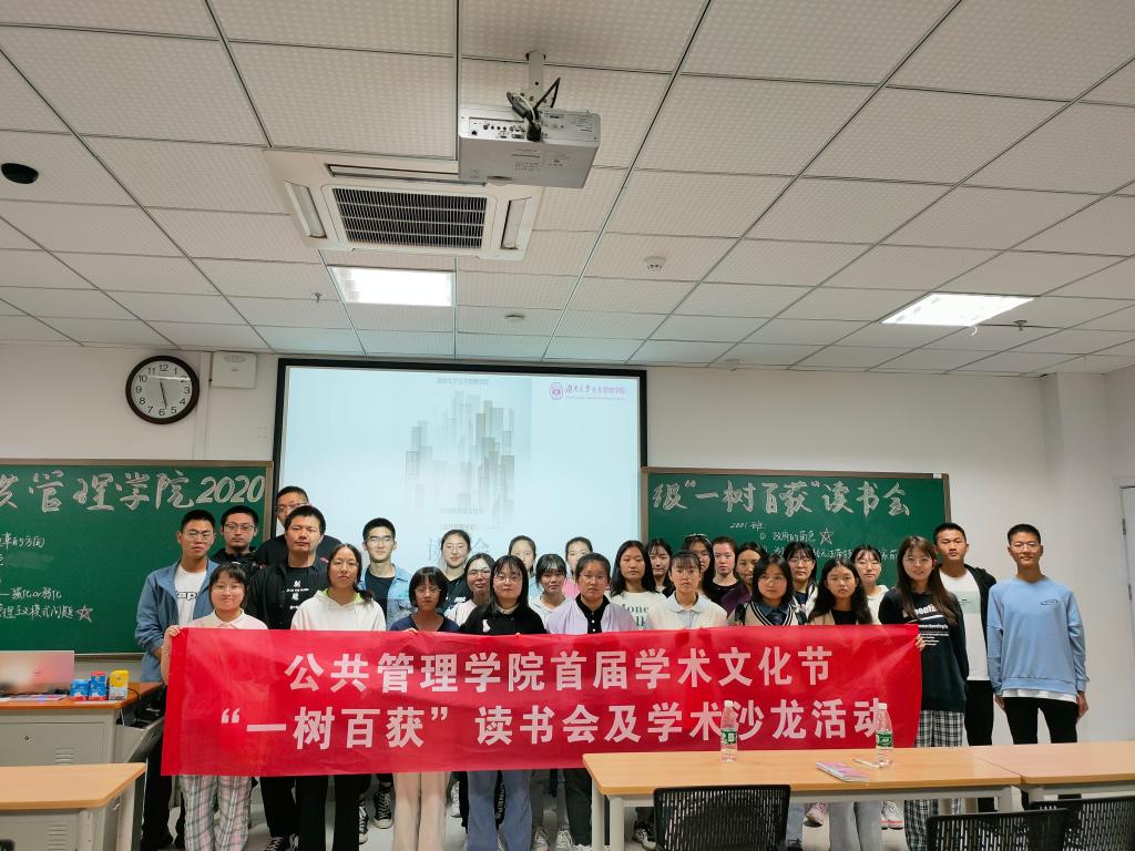 首届学术文化节之“一树百获”读书会。此次读书会邀请李金龙老师与万旋老师出席并担任评议嘉宾,由2020级本科生分享其阅读《公共管理导论》后的感悟与思考。