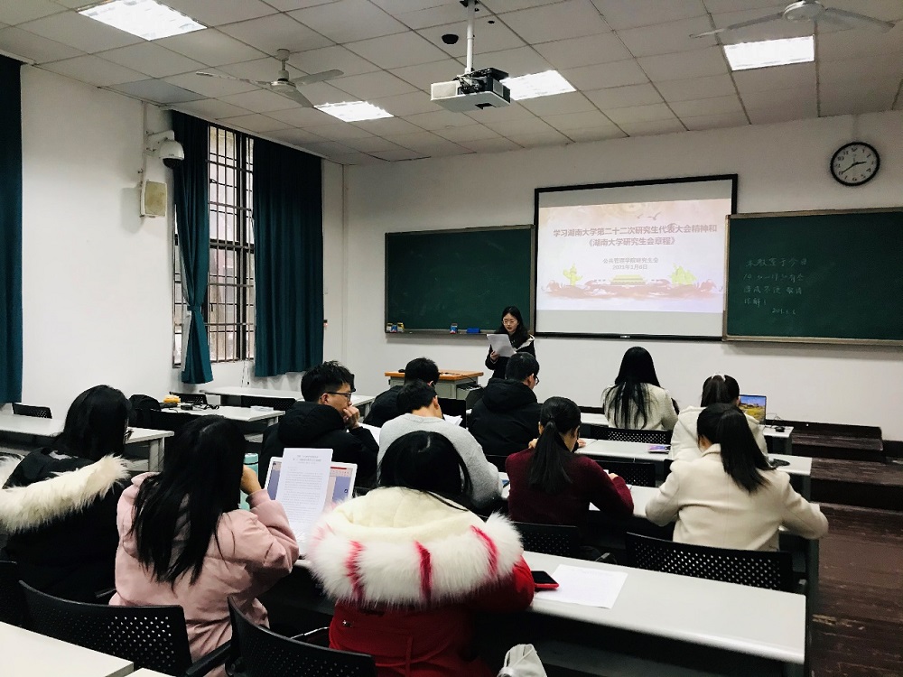 研究生会章程》,结合学院研究生会过去一年开展的工作,要求大家明确自身作为学生干部的职责,代表同学发声,维护同学权益。