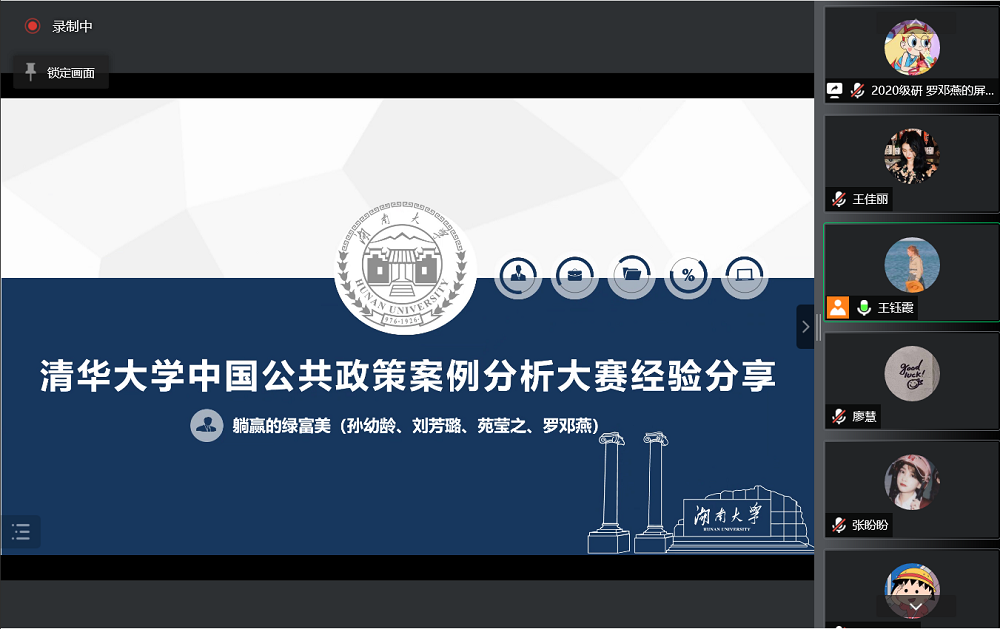 5月7日晚7:30,由我院主办,院研究生会承办的清华大学中国公共政策案例分析大赛经验分享通过腾讯会议线上举行,本次活动我们邀请到获得清华大学2021年中国公共政策分析案例大赛三等奖的2020级硕士研究生孙幼龄、刘芳璐、苑莹之、罗邓燕主讲,由2021级硕士研究生王钰霞担任主持人,为同学们的案例写作提供相关经验指导。