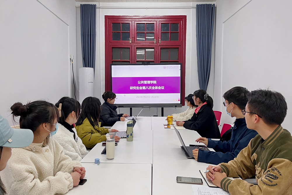2023年3月24日晚,公共管理学院研究生会第八次全体会议在学院214室召开,综合服务部何思缤主持会议,研会全体成员参会。