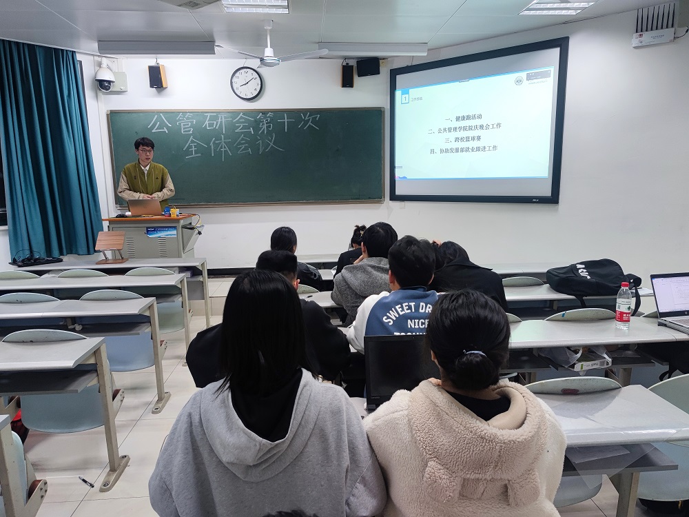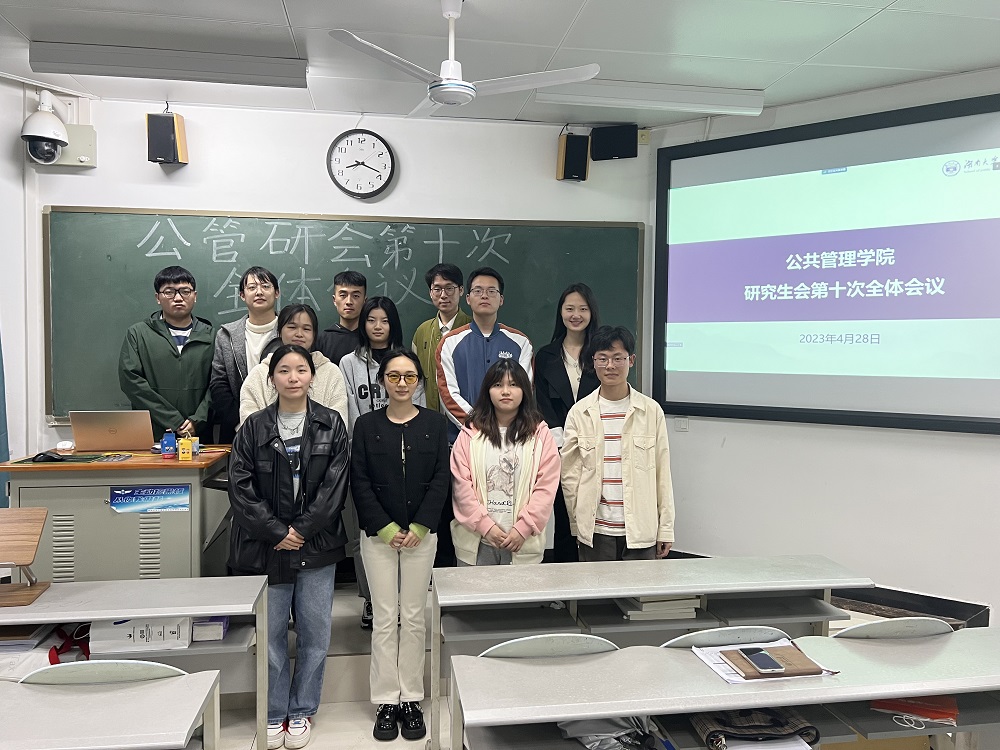 4月28日晚,公共管理学院研究生会第十次全体会议在湖南大学财院校区水上教学楼502教室召开。综合服务部干事庞腾佳主持会议,研究生会全体成员参会。